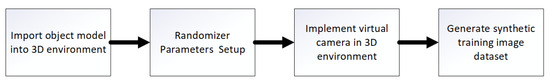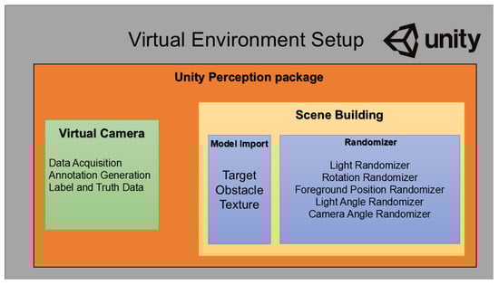The Unity Perception package is a tool for generating synthetic data, primarily for training computer vision models. It simplifies the process of creating and managing 3D scenes, significantly reducing the time and cost of data collection. An overview of the establishment of the virtual environment for this project is shown in Figure 2.