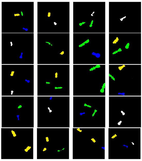 Figure 8 demonstrates the synthetic images generated in the virtual environment. These images retained the details and texture information of the object’s surface, exhibiting high visual quality. Through visual inspection, we found that the synthetic images performed excellently in terms of visual details and realism, effectively simulating real-world scenes. Figure 9 shows the results of semantic segmentation applied to the synthetic images. Supported by the synthetic data, the semantic segmentation tasks could accurately identify and classify different objects and regions within the images. Despite the synthetic images’ excellent performance in detail and realism, there remains a noticeable gap in style compared to actual photographs. These differences may be reflected in aspects such as colour rendering, lighting, and texture details, indicating that images generated in the virtual environment cannot fully replace real-world photographs in certain scenarios. These disparities warrant further research to further narrow the gap between virtual synthesis and reality.
