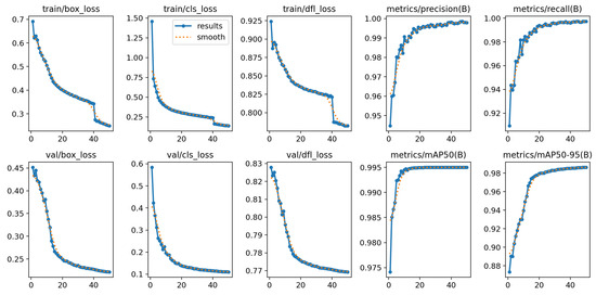 Figure 15 illustrates the variation in losses and metrics (precision, recall, and mAP) during the training and validation process. It can be observed that with the increase in training iterations, both training and validation losses gradually decrease, while model precision and recall significantly improve and stabilize. Notably, mAP@0.5 and mAP@0.5 to 0.95 on the validation set reach nearly 1.0, indicating the excellent performance of the model across different IoU (intersection over union) thresholds. These results further demonstrate the effectiveness of using the Unity-synthesised dataset for training deep learning models.