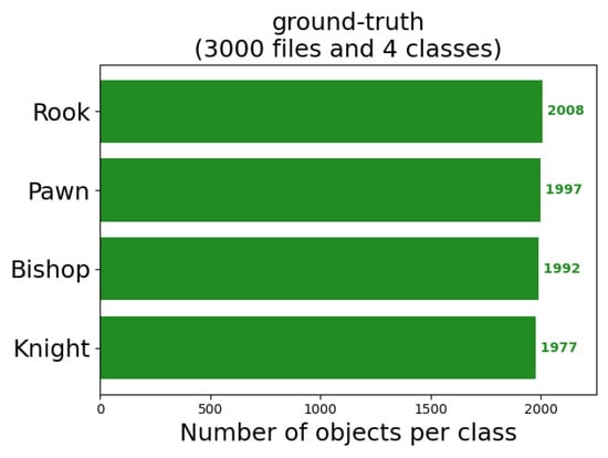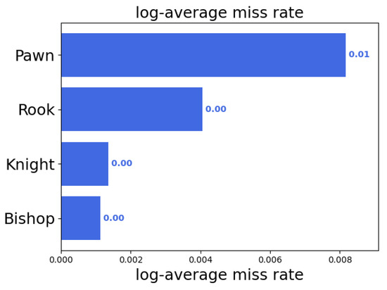As shown in Figure 21, for the rook, knight, and bishop categories, the log-average miss rate is almost zero, while the pawn category has a relatively high log-average miss rate of 0.01. Figure 22 shows the distribution of object quantities across four different categories, helping to assess the representativeness and balance of each category in the dataset.