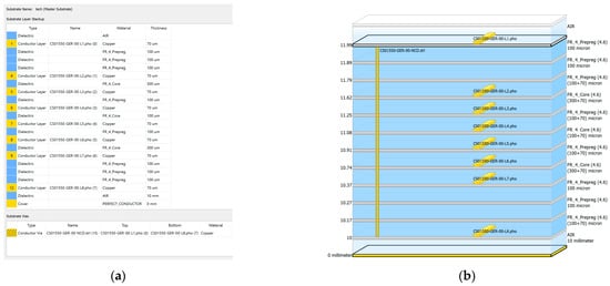 Figure 23. OBC layout model: (a) substrate layer stackup; (b) substrate illustration.