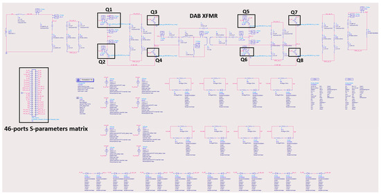 Hence, the design was validated prior to board production, saving costs and accelerating the product time to market and avoiding vicissitudes and redesign due to the lack of an analysis tool capable of the precise estimation of the design requirements in terms of parasitics. This approach is the modus operandi in RF (Radio Frequency) electronics but also becomes very valuable in power electronics, where very fast commutations at a high switching frequency occur when exploiting WBG semiconductors to their best potential. The DAB converter under examination is part of a high-power density 400 V GaN OBC, which also integrates an additional DC-DC low-voltage stage (in phase-shifted full-bridge topology) for interconnection to a 12 V battery.