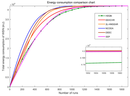 Comparison of total energy consumption in HWSNs.