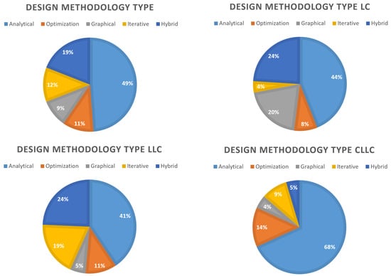 - Analytical design: This is the most used design methodology. It relies on an in-depth analysis of the converter to obtain equations and inequations that describe the behavior of the converter. Typically, equations are derived to achieve soft switching capabilities, such as ZVS and ZCS for the entire load range, and meet with the gain requirements considering the voltage range of the input and output, minimizing the RMS resonant current, voltage stability, etc.