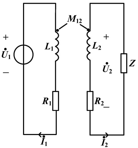 Based on the fundamental principles of voltage transformers, the equivalent circuit diagram of a single-phase voltage transformer, as shown in Figure 1, is presented. In this diagram, Z is the load, L1 and L2 represent the self-inductance of the primary and secondary windings, respectively, R1 and R2 are the equivalent resistance of the primary and secondary windings, and M12 represents the mutual inductance between the two windings. is the added supply voltage. and are the primary and secondary currents, respectively.