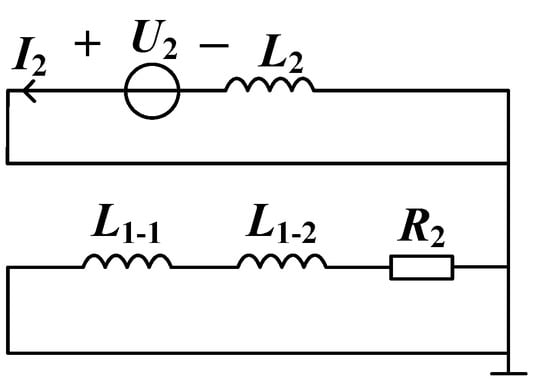 In this section, a no-load experiment was carried out. In the experiment, a sinusoidal AC voltage U2 with an effective value of 10 V–150 V and a frequency of 50 Hz is applied to the secondary side of the voltage transformer, and the primary side is open-circuited. In the simulation, the primary side resistance R2 of 108 Ω is equivalent to no-load, L2 is the secondary side coil, L1-1 and L1-2 represent the two parts of the primary side coil, respectively, and the equivalent circuit is shown in Figure 6.
