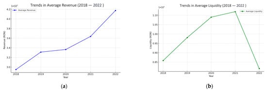 The evolution in average revenue (a) and liquidity (b) between 2018 and 2022. Source: authors’ conceptualization based on the dataset.