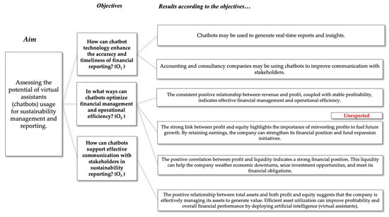 Moreover, while artificial intelligence is increasingly implemented across various sectors to enhance efficiency and support data-driven decision-making, limited research by refs. [,,] has explored its specific application within sustainability management and financial reporting [,,]. Most studies on AI in business contexts have focused on predictive analysis [], data processing [,], or customer engagement, with few examining the potential role of virtual assistants [,], such as chatbots, in supporting reporting on sustainability standards. A systematic review of a recent literature review revealed a gap in understanding how chatbots might contribute to sustainable business operations by optimizing financial management and reporting. In this context, the study examines how the use of artificial intelligence can improve the dissemination of information related to the fulfillment of sustainability standards. The study addresses the central research question, namely, how can digital technologies, such as chatbots, enhance sustainability-focused reporting and value creation for stakeholders? To explore this, this study examines the following sub-questions: (1) How can chatbot technology enhance the accuracy and timeliness of financial reporting? (2) In what ways can chatbots optimize financial management and operational efficiency? (3) How can chatbots support effective communication with stakeholders in sustainability reporting? All these questions represent the basis of the objectives of this study, which, for greater specificity, are represented by the following: (1) to assess the potential of chatbots in improving the timeliness, accuracy, and efficiency of sustainability reporting; (2) to explore how chatbot technology can optimize financial management and operational processes in sustainability contexts; and (3) to evaluate the role of chatbots in facilitating effective communication and engagement with stakeholders.