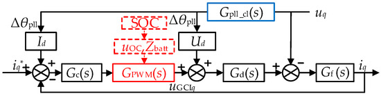 Taking the influence of the PLL and the inductance variation in the DESS into consideration, the small-signal model of the q-axis current loop can be expressed as in Figure 2, where the q-axis current iq is influenced by the PLL.