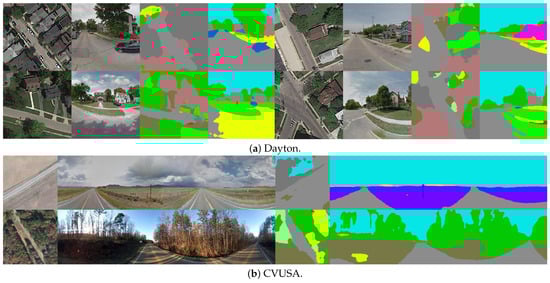 We conducted extensive experiments on two different datasets: Dayton [57] and CVUSA [58], as shown in Figure 6. Detailed settings on the two datasets are given as follows.