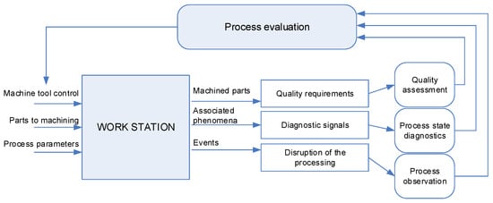 In general, these decisions can be based on the information obtained (Figure 1) from the direct measurement of the machined parts (the measurement is carried out after the operation), from the measurement of signals coming from phenomena accompanying the process (e.g., force, temperature, and vibration signals; measurement is carried out online), and from the observation of events occurring during the realization of the process (e.g., error of the process operator and machine breakdown) [6,8].