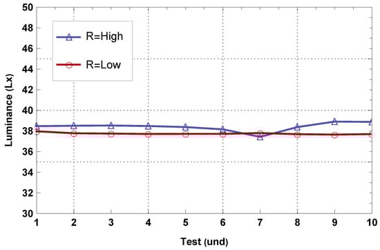 Figure 13 presents a clear relationship between resolution and luminance, a measure of the brightness of an image. The average luminance of high-resolution images systematically exceeds that of low-resolution images, indicating that high-resolution images are brighter. This relationship underlines the impact of resolution on image quality. Furthermore, this luminance result is within the luminance range set by the system and maintains agreement for both types of images.