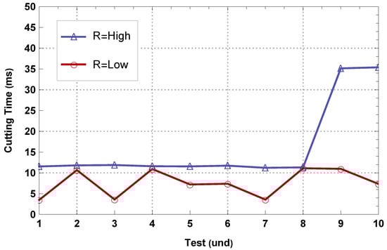 Cutting time depending on each test.