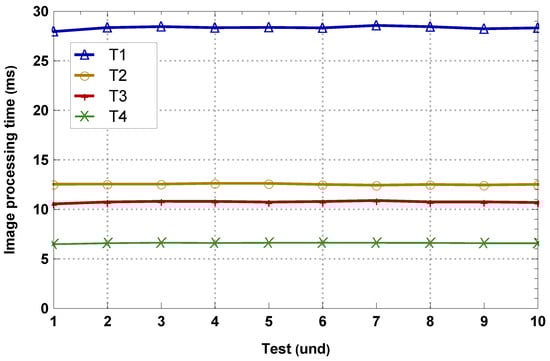 The results of the image acquisition tests are divided into two parts. The first corresponds to high-resolution images (R = High), and the second to low-resolution images (R = Low), i.e., the first corresponds to 1920 × 1080 pixel images, and the second to 800 × 600 pixel images for each image accordingly.
