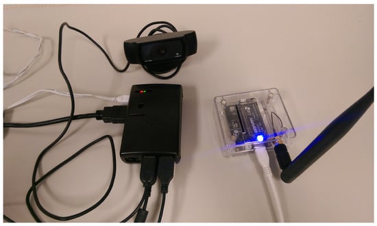 Finally, the hardware, software, and tools used to design the proposed system model are as follows. We have used a Raspberry Pi 3 model B (Raspberry Pi Foundation, Cambridge, United Kingdom), which has a Broadcom BCM2387 chipset and an ARM Cortex-A53 processor with four cores as hardware. The RAM is 1 GB, and the graphics processor is VideoCore IV. A LoPy microcontroller (Pycom, Newcastle, Australia), whose size is 55 mm × 20 mm × 3.5 mm, also with a dual-core Espressif ESP32 chipset, 512 KB RAM, 4 MB external Flash memory, 802.1 b/g/n 16 mbps, Bluetooth Low Energy. In addition, regarding LoRa specifications, such as the Semtech LoRa SX1272 transceiver, power consumption with WiFi is 12 mA in active mode and 5 μA in standby mode, with LoRa being 15 mA in active mode and 1 μA in standby mode. A board for conditioning and operation. In addition, the pigtail, UFL connector, and SMA connector are used to connect to the LoRa antenna. A Logitech C920 Full HD webcam for capturing and analyzing images. We have used MicroPython (version 1.9.6), a complete Python compiler that executes commands, as software to develop the system model; Open Source Computer Vision Library (OpenCV) for image processing; and Message Queuing Telemetry Transport (MQTT) libraries for compatibility with Pycom and Raspberry Pi for creating IoT-based projects. The final prototype is shown in Section 3.4.
