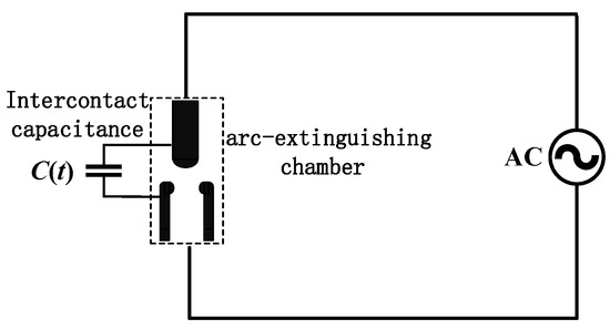 The calculation can be obtained with a power supply frequency f ≤ 1.02 × 108 Hz. At this time the equivalent inductance is negligible and the arc extinguishing chamber can be equivalent to a pure capacitance, as shown in Figure 1.
