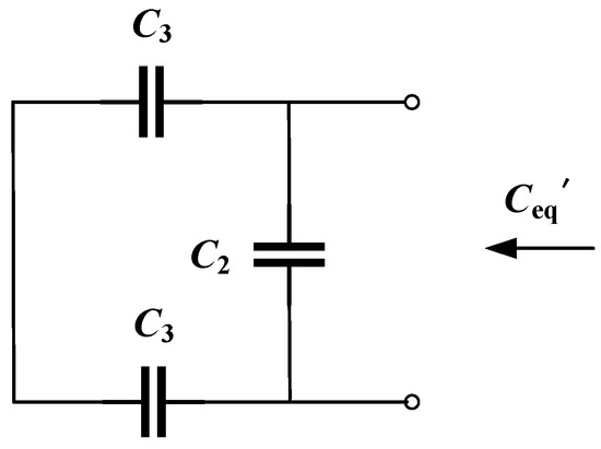 The specific procedure for measuring the conductor stray capacitance is as follows. The circuit breaker remains in the closed state, the dynamic and static contacts remain equipotential, and there is no fracture capacitance C1. The voltage line crocodile clips pass through a silicone rubber insulating gasket clamped on the circuit breaker terminal board, as shown in Figure 5, at this time, the crocodile clips and the terminal board for the insulated state, the voltage of the high frequency power supply is not applied to the terminal board, the formation of the capacitance between the voltage line crocodile clips and the upper and lower terminal boards C3, then the equivalent circuit as shown in Figure 6. At this time, the measured equivalent capacitance Ceq′ is: