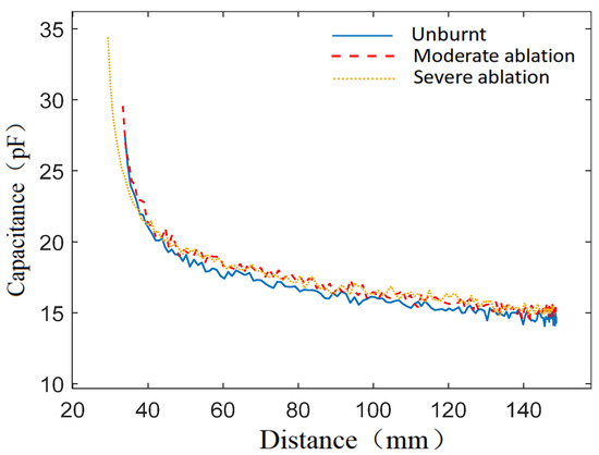 Comparison of dynamic capacitance-travel curves of different ablative degrees.