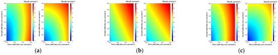 Calculated values of sheath current under different core currents for different phase sequence combinations. (a) Combination 1; (b) Combination 2; (c) Combination 3.