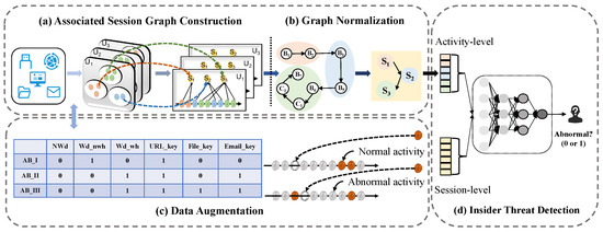 - To further enhance the performance of the insider threat detection model based on the associated session graph, graph normalization and data augmentation are introduced to highlight key nodes of the associated session graph and mitigate the imbalance of anomalous samples.