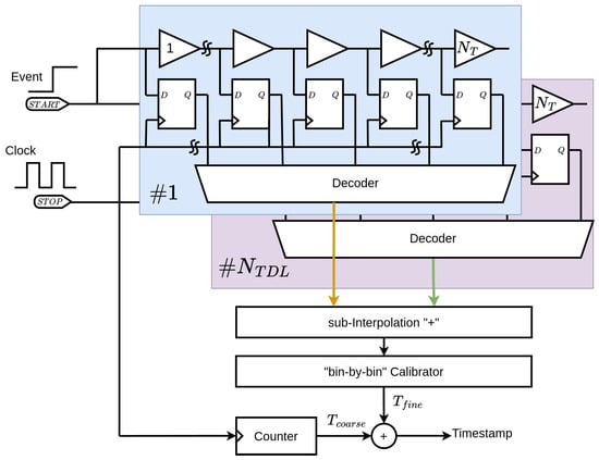 Within the field of electronics engineering, Time-to-Digital Converters (TDCs) are integral parts of time-resolved systems and hold a prominent place []. Their functions encompass multiple fields, including quantum technologies [,], life sciences [,], and nuclear physics [,].