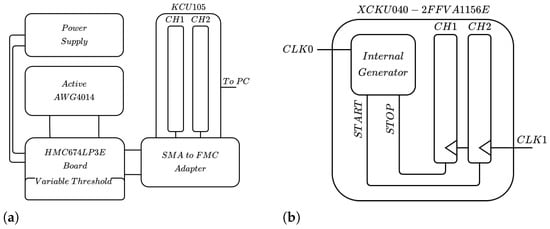 - Lusardi, N.; Garzetti, F.; Corna, N.; Marco, R.D.; Geraci, A. Very High-Performance 24-Channels Time-to-Digital Converter in Xilinx 20-nm Kintex UltraScale FPGA. In Proceedings of the 2019 IEEE Nuclear Science Symposium and Medical Imaging Conference (NSS/MIC), Manchester, UK, 26 October–2 November 2019; pp. 1–4. [Google Scholar] [CrossRef]