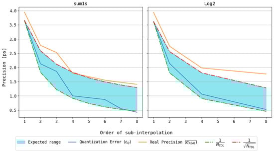 Another interesting open issue would be to mathematically demonstrate, not just experimentally, that the Log2 decoding is more effective in terms of precision than the sum1s decoding in the case of non-sub-interpolated TDLs, whereas the bubble compression offered by the sum1s algorithm helps to improve sub-interpolation. This would validate or refute the hypothesis proposed in Section 3.6, where we deduced that the most significant information is contained in the MSB of the thermometer code and that the BEs only help improve sub-interpolation, likely because they somehow help to decorrelate measurements from different TDLs, thereby making sub-interpolation more effective.