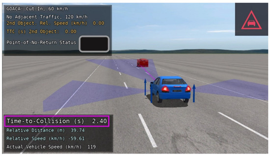 The visualization of the ARO beginning to cut into the middle lane where the AV is driving during the 120 km/h scenario can be seen in Figure 8.