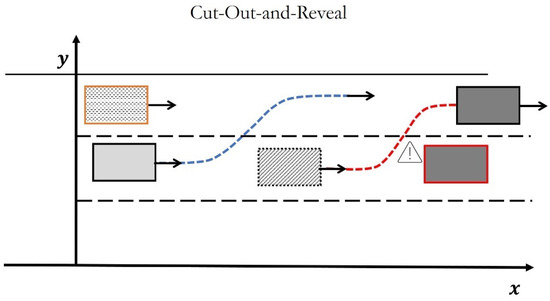 Cut-Out scenario with one additional traffic vehicle in the left adjacent lane to the AV.