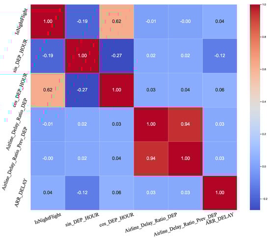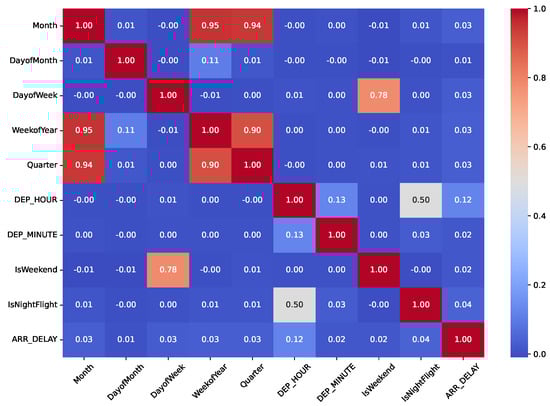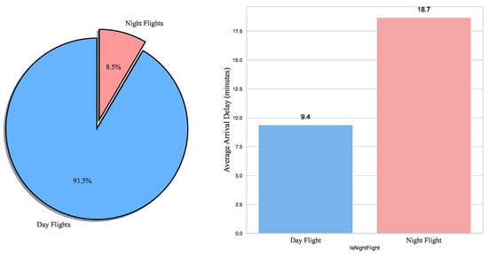 where T is the scheduled departure time in HHMM format, and N represents whether a flight is a night flight (1 if it departs between 9:00 p.m. and 4:00 a.m., 0 otherwise). The time range for night flights was set from 9:00 p.m. to 4:00 a.m. based on operational and behavioral patterns observed in aviation. This range aligns with common industry definitions of “red-eye” flights, which typically occur during late-night hours when passenger traffic and airport operations are lower. These hours often present distinct characteristics, such as reduced air traffic congestion, fewer operational staff, and varying weather conditions, which can influence delays differently compared to daytime flights. Additionally, the 9:00 p.m. to 4:00 a.m. window includes flights that depart in the late evening and arrive in the early morning, allowing the model to capture unique temporal trends associated with nighttime operations. By creating this binary feature, this study isolates potential patterns in delays specific to night operations, which might otherwise be obscured in a broader temporal analysis.