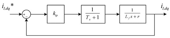 The control block diagram of the inner current loop can be obtained as Figure 4, where represents the proportional coefficient of the proportional controller; represents the signal sampling delay, with = being the sampling period value. represents the inductor filtering stage, where and .