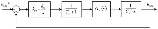 The controller structure of the outer voltage loop is shown in Figure 5, where and are the proportional and integral coefficients of the PI controller, respectively; represents the signal sampling delay, is the closed-loop transfer function of the inner current loop, and denotes the filtering element, with .
