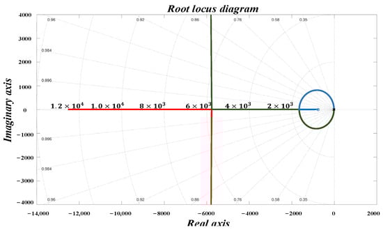 By applying the root locus method, the root locus diagram of the system has been plotted, as shown in Figure 6. From this diagram, we can observe that all the roots of the designed system lie in the left-half plane of the complex plane, indicating that the system is stable. Furthermore, through detailed analysis of the root locus diagram, we can conclude that both the steady-state and dynamic performance of the system exhibit favorable characteristics.