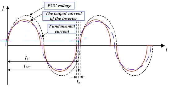 From Figure 7, the leading phase angle of the fundamental current relative to the PCC voltage can be obtained as follows: