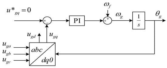 In the composite pre-synchronization control strategy adopted in this paper, the phase is independently tracked and synchronized. The working principle of the synchronization tracking module is illustrated in Figure 12.