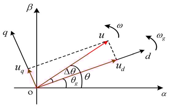 By performing coordinate transformation on the three-phase output voltage , the output active voltage u-d and the output reactive voltage u-q are obtained as follows: