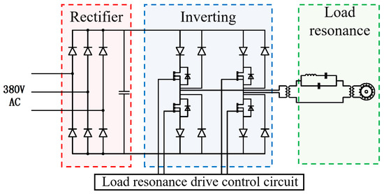The typical components of a DFIH power supply include the rectifier circuit, inverter circuit, and resonant circuit, as shown in Figure 7 [38]. These parts play a central role in the power supply system and have become the focus of research. The rectifier circuit primarily consists of three-phase bridge and uncontrolled rectifier circuits designed to meet different power and load requirements. The inverter circuit involves full-bridge inverters, diode-clamped inverters, multilevel inverters, and synchronous dual-frequency inverters, aiming to enhance system power density and control flexibility. The resonant circuit includes LC series, parallel, and composite resonant circuits, which are used to adapt to the circuit’s resonant characteristics under different loads.