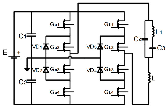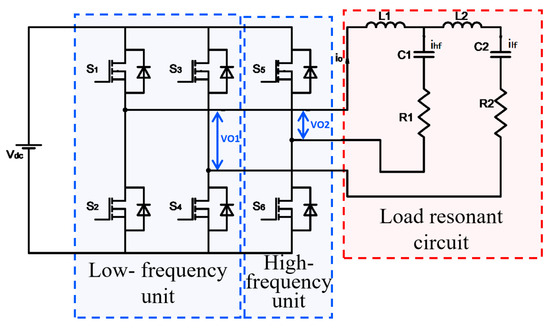 The single-inverter bridge structure is simple and cost-effective, as shown in Figure 8, and the application of selective harmonic elimination or frequency modulation strategies can achieve excellent dual-frequency output power control [39]. In the literature [40], Zhao et al. proposed a single-inverter bridge dual-frequency inverter that utilizes multi-frequency selective harmonic elimination technology to output two frequency current signals using a relatively simple topology. This approach is suitable for applications with low or stable load power, helping to reduce system complexity and manufacturing costs.