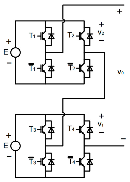 Diong and Bill proposed a DFIH power supply design [29,52] that uses a Cascaded H-Bridge (CHB) multilevel converter-based approach. This design, as shown in Figure 11, generates multilevel output by serially connecting multiple H-bridge units. The CHB structure is advantageous because it facilitates the easy expansion of voltage levels and allows for multi-frequency outputs within a single inverter. In DFIH, the CHB inverter can precisely adjust output phase angles to synthesize multi-frequency voltages and suppress higher-order harmonics. It also maintains high efficiency and excellent output waveforms across different voltage levels.