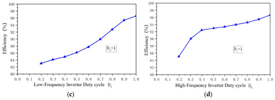 In single-inverter bridge topologies, achieving dual-frequency output is typically accomplished by adjusting the inverter’s switching frequency. Assuming the inverter’s switching frequency is denoted as , the relationship between the inverter’s output power and the switching frequency can be expressed as the following equation: