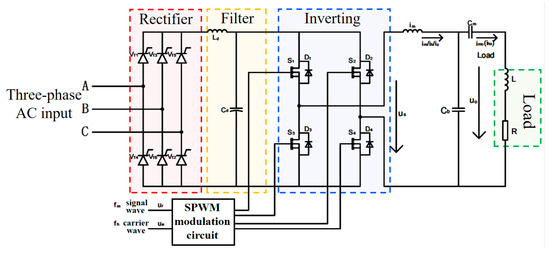 - An, S.; Wang, M.; Li, C. Simulative study on three phase bridge inverter with dual frequency based on one-cycle control. Appl. Electron. Tech. 2010, 8, 77–80. (In Chinese) [Google Scholar]