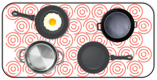 - Plumed, E.; Lope, I.; Acero, J. Modeling and design of cookware for induction heating technology with balanced electromagnetic and thermal characteristics. IEEE Access 2022, 10, 83793–83801. [Google Scholar] [CrossRef]