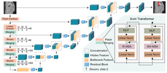 - Hatamizadeh, A.; Nath, V.; Tang, Y.; Yang, D.; Roth, H.R.; Xu, D. Swin UNETR: Swin Transformers for Semantic Segmentation of Brain Tumors in MRI Images. In Brainlesion: Glioma, Multiple Sclerosis, Stroke and Traumatic Brain Injuries; Crimi, A., Bakas, S., Eds.; Springer International Publishing: Cham, Switzerland, 2022; pp. 272–284. [Google Scholar]
