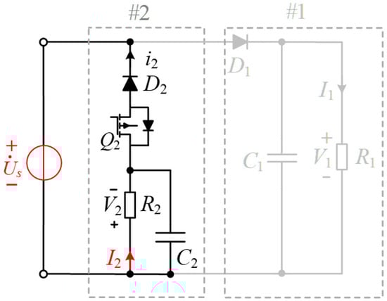 The simplified circuit diagram during the negative half-wave period through the output loop #2.
