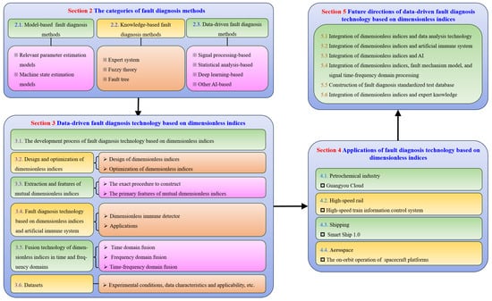 Organization of this paper. The categories of fault diagnosis methods are summarized in Section 2; the development process, five latest technology and four application fields of data-driven fault diagnosis based on dimensionless indices are summarized in Section 3 and Section 4, which contributes to discussing future directions in Section 5.