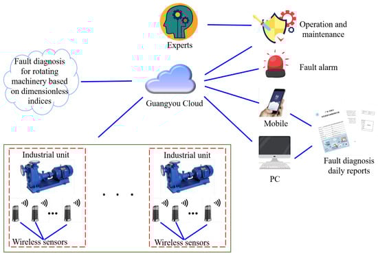 While deep learning and AI have advantages when it comes to learning patterns from data, the extraction of time and/or frequency characteristics hidden in non-stationary sensory signals may help improve the diagnostic accuracy. The current frequency-domain analysis method is the dominant technology. However, it is difficult to diagnose complex faults online in real time using only signal transformation. The time-domain analysis method is good in real time, but its features make it difficult to establish effective fault correspondence. The combined time and frequency domain analysis method is still in its nascent stages and lacks a robust theoretical framework that aligns with industrial applications. Despite the fact that historical data contain a large number of operating mechanisms and laws of complex systems, online sampling data can more accurately reflect the most recent changes in the system’s current operating state. Thus, further research is required on the analysis and processing technology of online data to facilitate real-time online diagnosis and decision making for complex system faults. As a novel technology for fault diagnosis, dimensionless indices have exhibited excellent capability in extracting complex fault features, are widely used in petrochemical companies, and are promoted in various industries [13]. Therefore, the focus is placed on the investigation of fault diagnosis technology based on dimensionless indices for rotating machinery.
