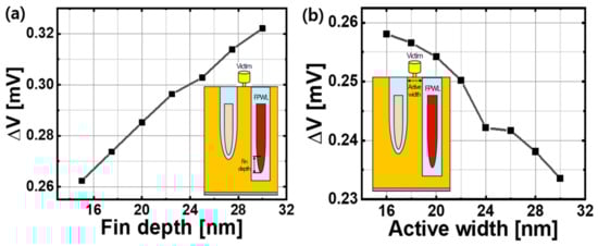 The simulation result of D0 failure according to device structure: (a) results of fin depth; (b) results of active width.