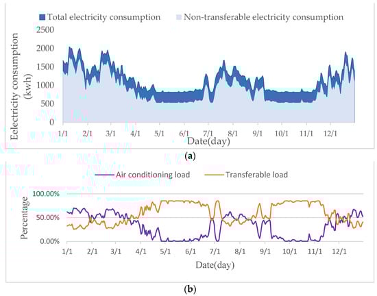 (a) Annual building electricity consumption and (b) air conditioning load and transferable load.