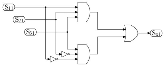 The implementation of the logical functions expressed in (10) is achieved by employing the four logical circuit modules (Figure 3).