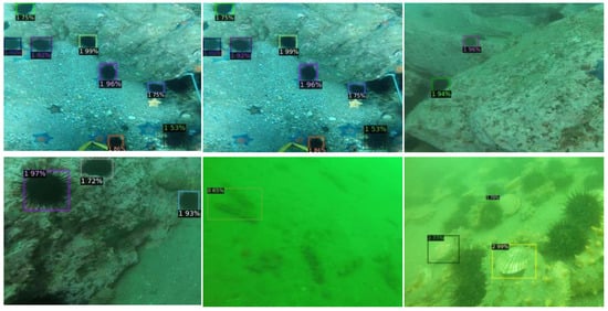 The UODD dataset [] comprises samples of sea urchins, sea cucumbers, and scallops captured in various underwater scenarios with differing levels of light scattering. The collection process took into account factors such as shooting angle, scene complexity, scene contrast, and target size. The dataset includes approximately 19,000 objects, represented by 3194 images. The distribution of these images into training, validation, and test sets was as follows: 2688 for training, 128 for validation, and 506 for testing.